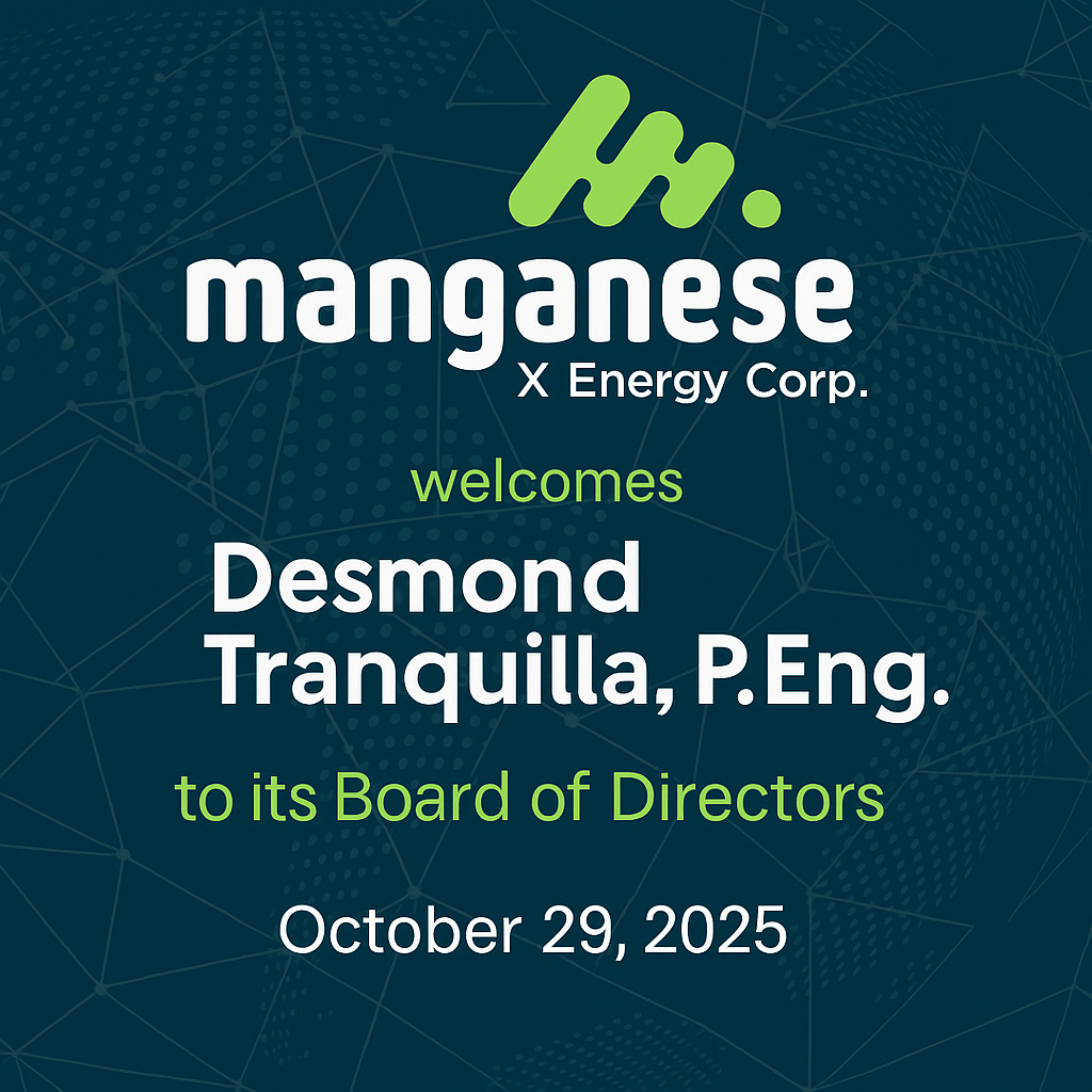 Manganese X Energy Announces Appointment of Desmond Tranquilla, P.Eng., as New Director